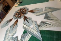 Hexagons cut from magazine paper and musty op-shop sun frocks